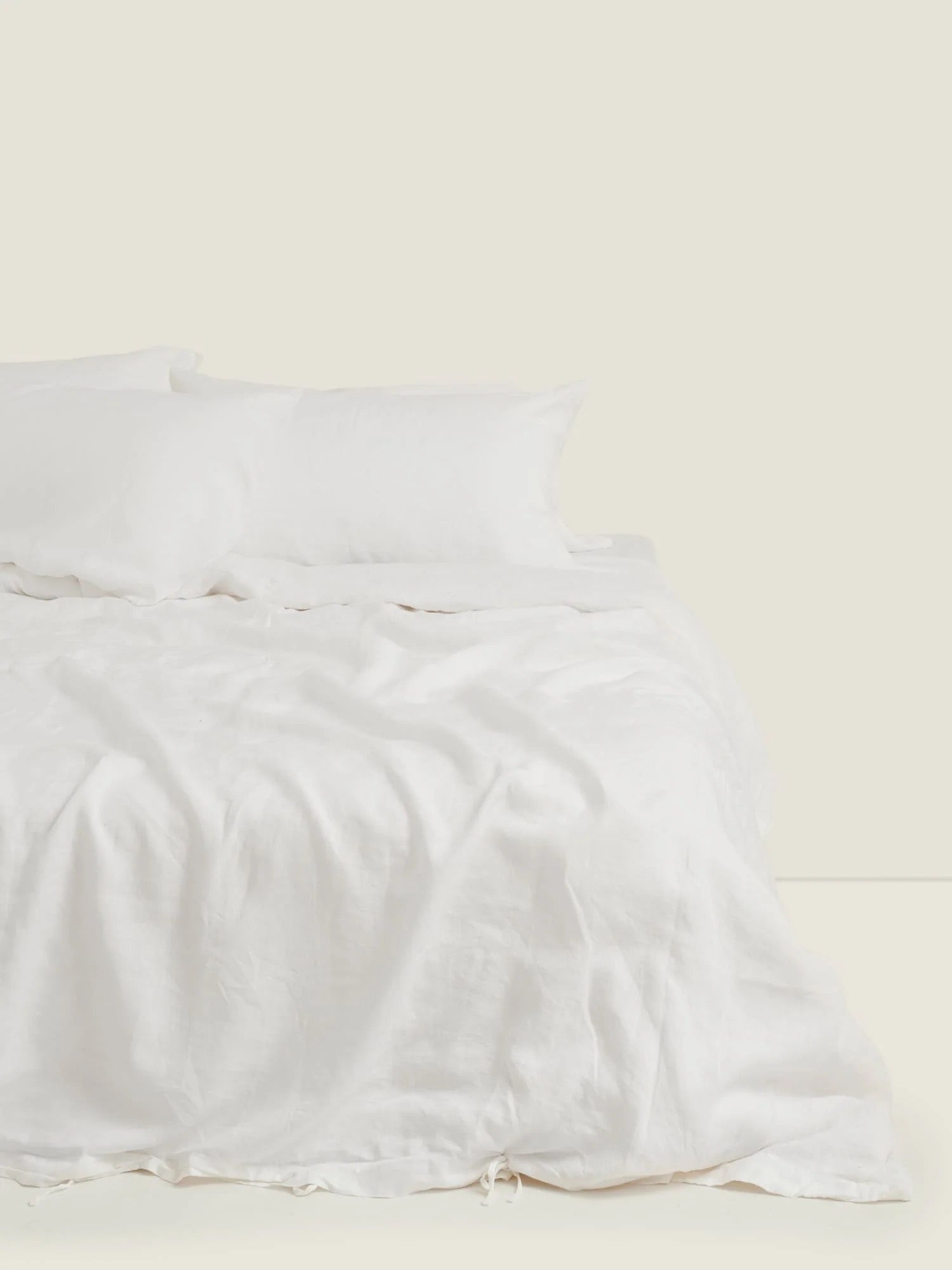 Introducing our luxurious Duvet Cover in White, designed to elevate your sleeping experience. Crafted from the finest 100% French linen, our Duvet Covers are environmentally conscious and OEKO-TEX certified, which ensures sustainable and ethical production. Each cover, pre-washed with volcanic stones, offers a supremely soft feel from the first touch and gets even softer over time. The smart tie closure ensures effortless bed-making and consistent duvet placement. Perfectly weighted to regulate your body temperature, our Duvet Cover promises cozy warmth in winter and cool comfort in summer. It is delivered in a complimentary reusable linen bag, embodying our commitment to quality and sustainability.