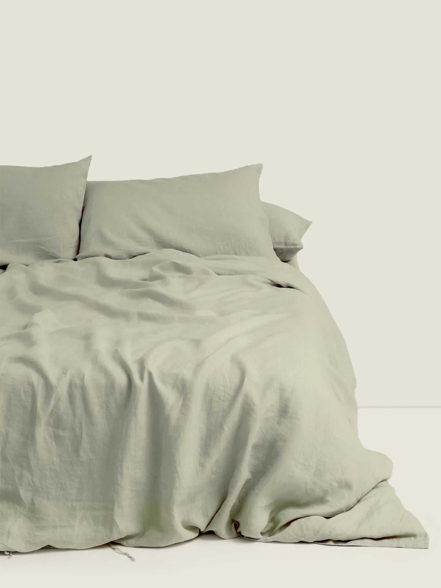 100% Pure French Linen Duvet Cover in Sage - Queen