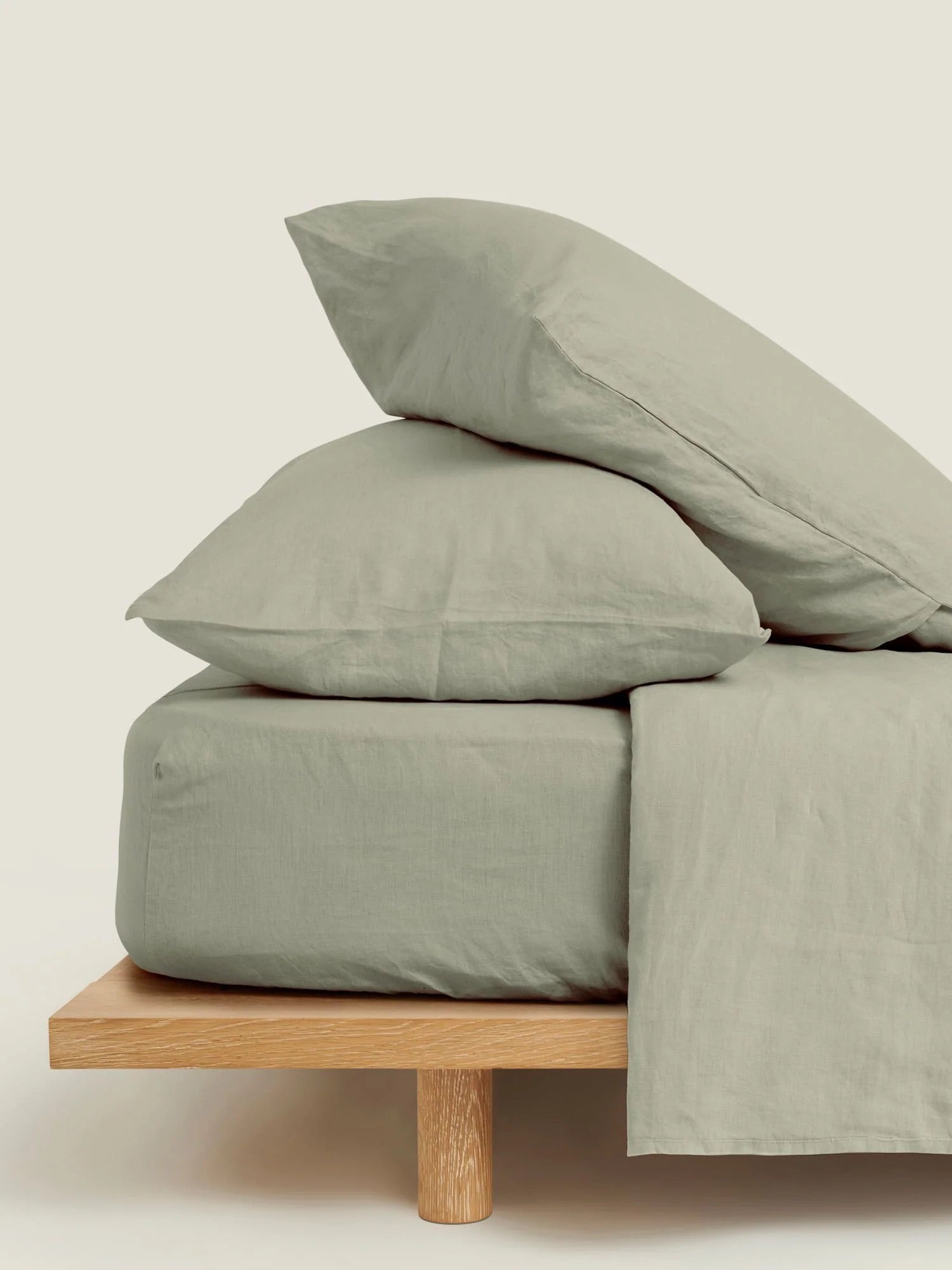 100% Pure French Linen Pillowcase Set of 2 - Sage