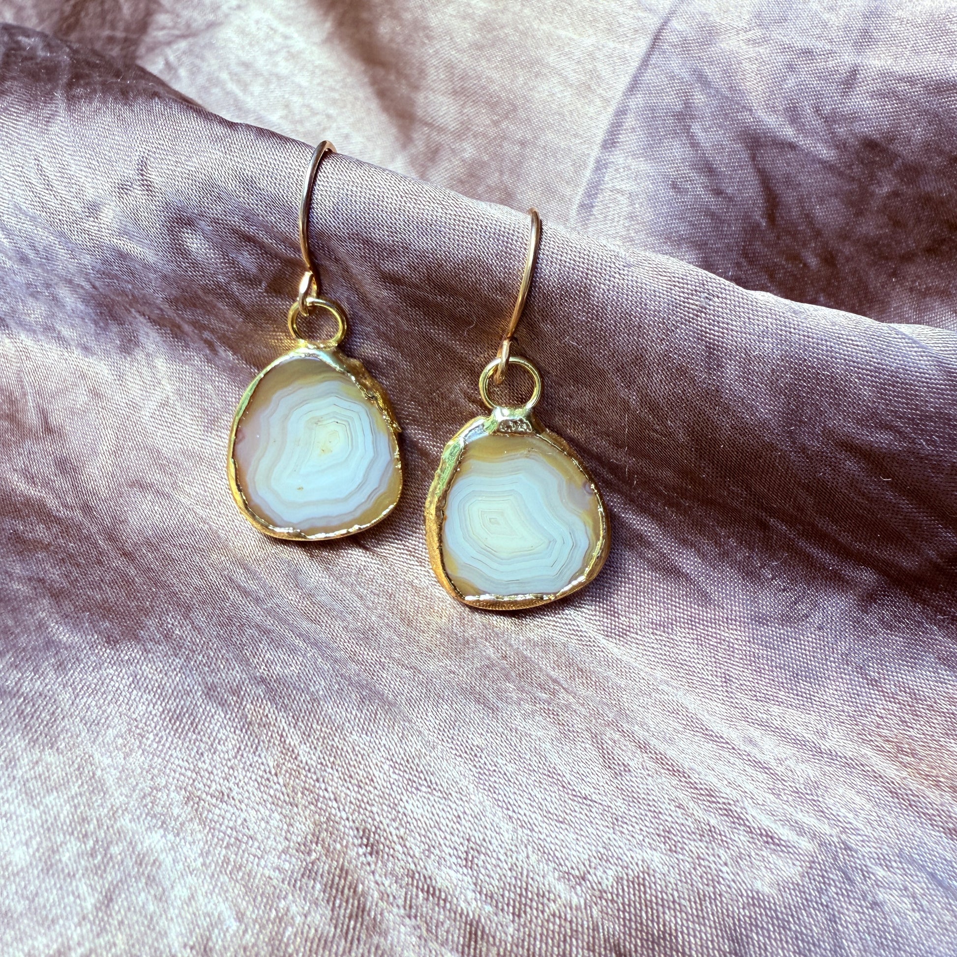 Every ring, necklace, bracelet and earring is handcrafted in Turkey. Each is unique - crafted according to the shape of the individual stone. Each handworked item has a brass base with an 18k gold plating. The stones range from beautiful turquoise to brightly coloured dyed quartz.