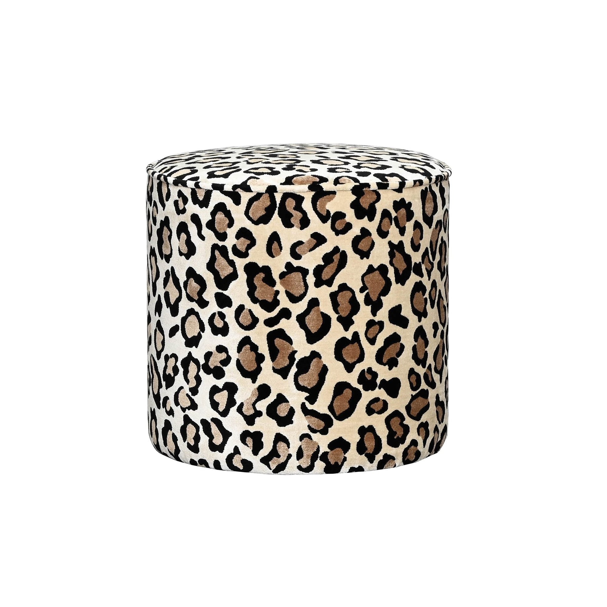 More exciting than a normal roundleopard beige velvet ottoman. Introduce the Belamy ottoman to your living space for a touch of color and texture. This generously padded round ottoman features a piped edge and comes in a variety of colors and two sizes. Use it as a footrest or an additional surface without sacrificing style.