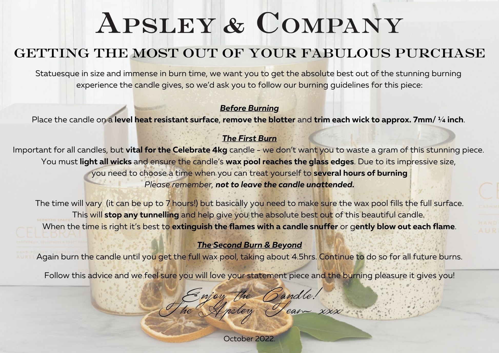 As the candles have been created to honour special times in our lives, we have packaged each one in a luxurious crisp white handmade box embellished with a gold foil inscription, making them the perfect gifting option.