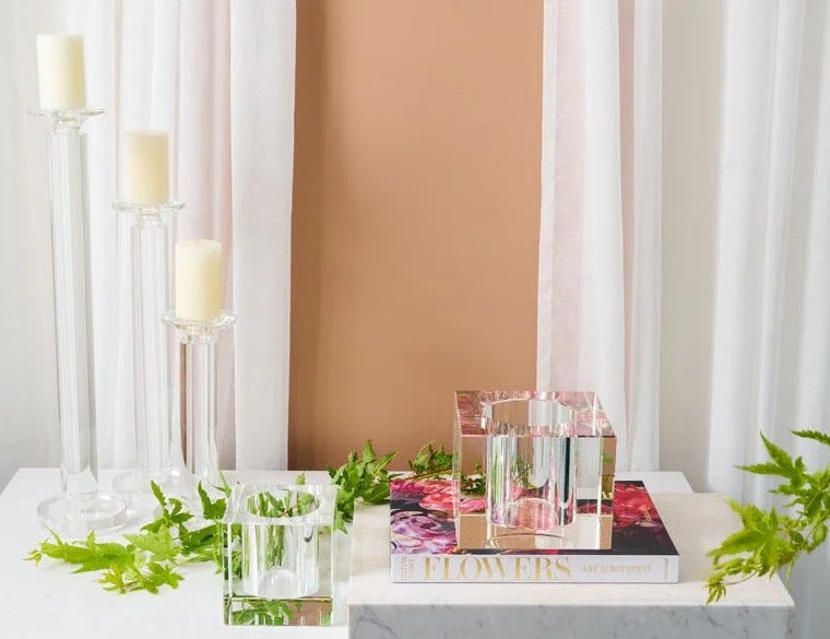Influenced by the Art Deco period and our desire to encourage the repurposing of vessels, these beautiful cut crystal pieces can be used as a candle hurricane or a vase – hence the inspired conception of a Vurricane