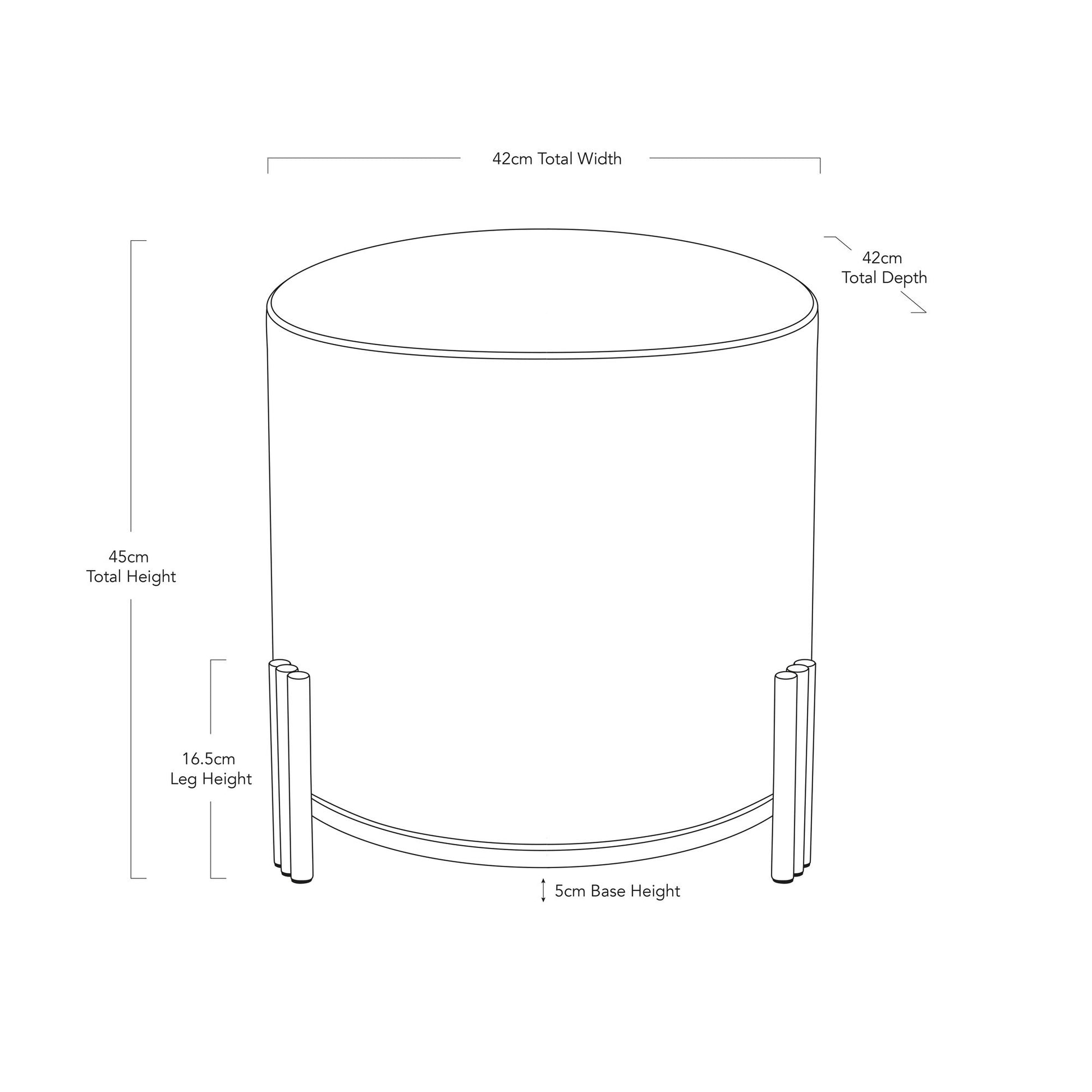 Introducing our stylish round white fabric ottoman, featuring unique metal legs. Available in both brushed gold and matt black finishes, these legs add a touch of elegance to any room. The ottoman is available in a variety of colors to match any decor. Use it as an extra seat, a footrest, or even as a coffee table. Add a touch of sophistication to your living space with this versatile piece.