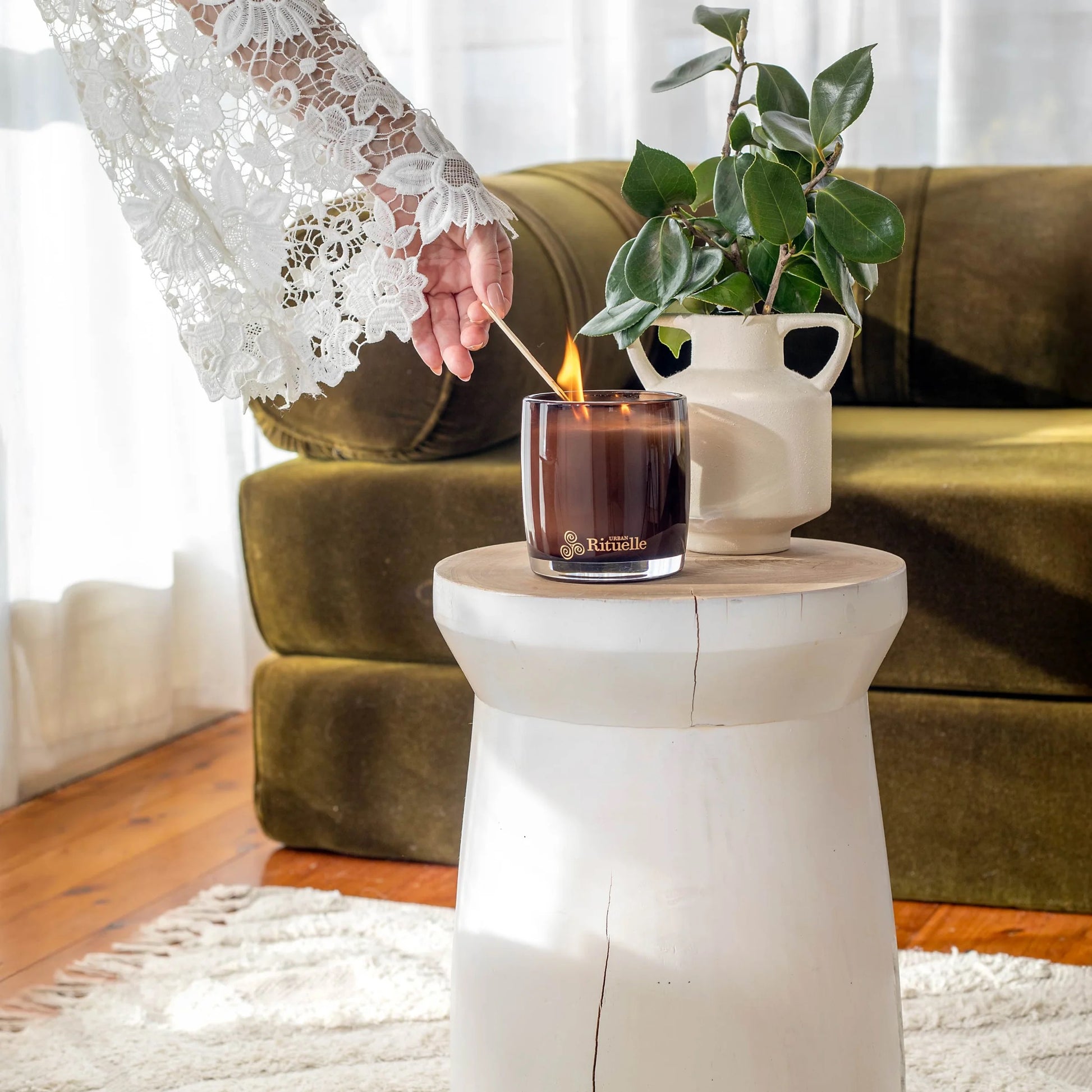 A decadent and juicy fragrance with top notes of ripe nectarines, bergamot, and orange honey blossom, balanced by aromatic vetiver