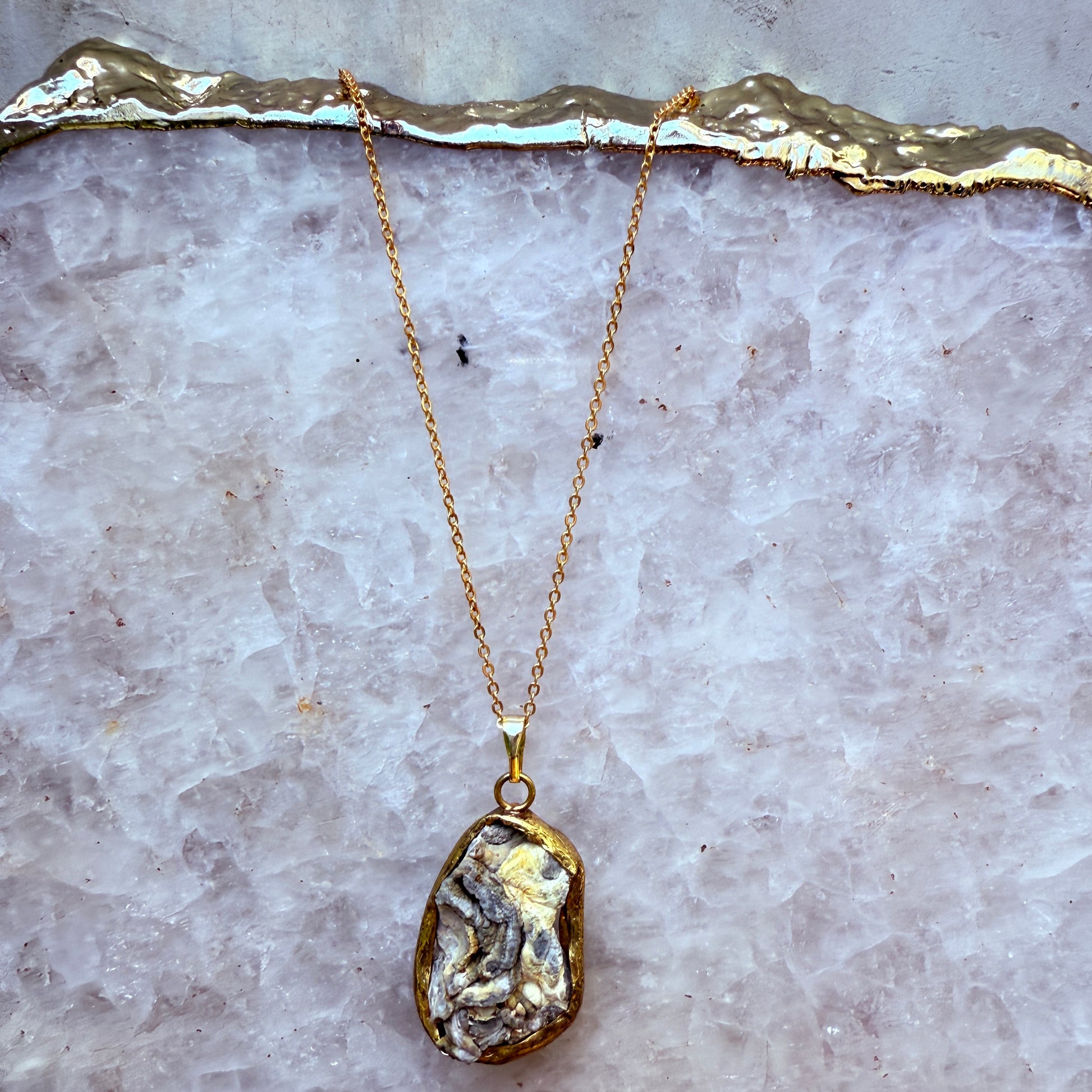 Every ring, necklace, bracelet and earring is handcrafted in Turkey. Each is unique - crafted according to the shape of the individual stone. Each handworked item has a brass base with an 18k gold plating. The stones range from beautiful turquoise to brightly coloured dyed quartz.